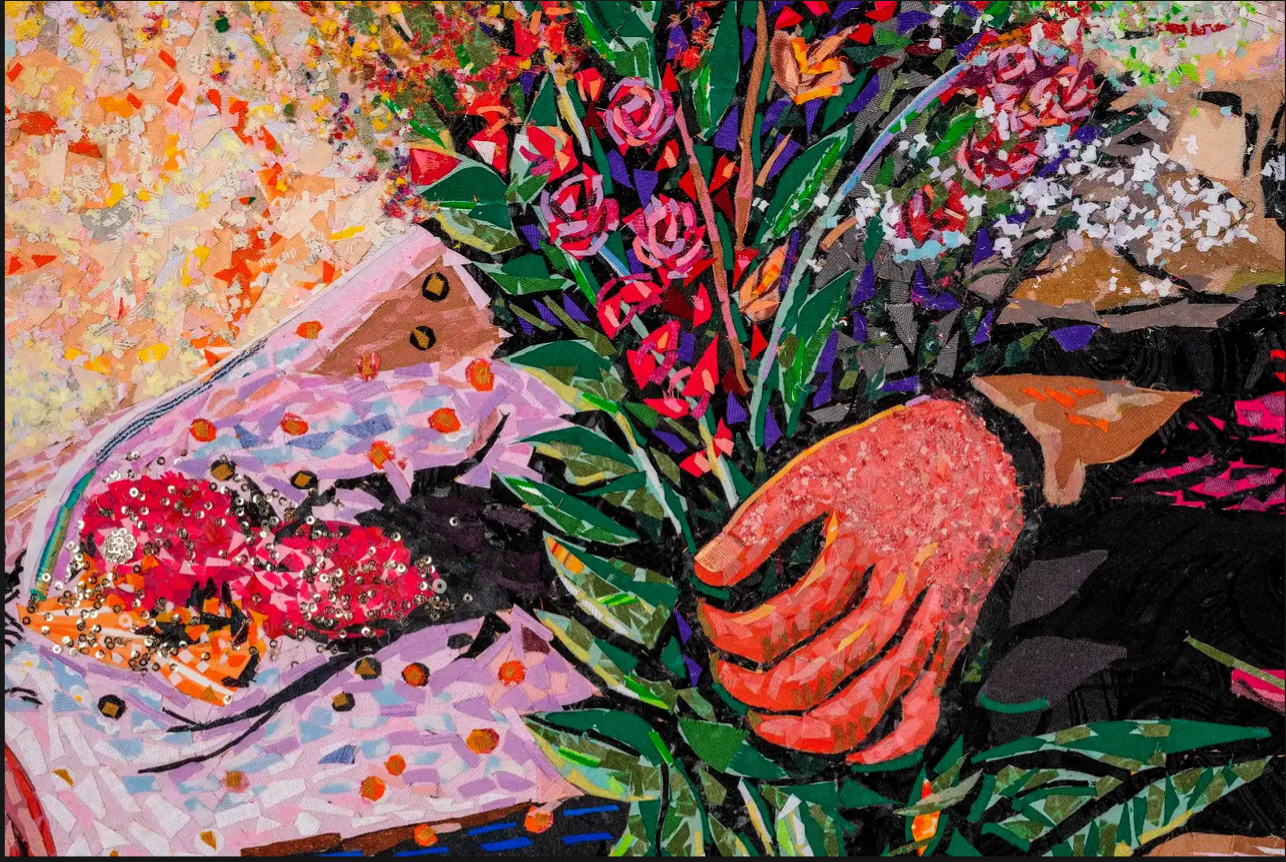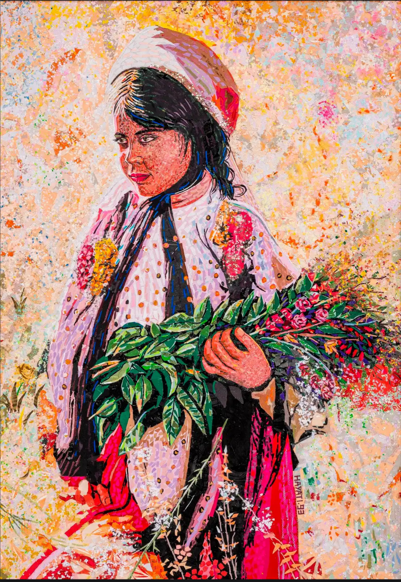 She started the collage with color masterbatch seeds and then chose the fabric because of the variety of colors and plant fibers and the ease of preparation, and she was able to create luxurious works that became a part of the Razavi Museum and the Garden of the Iranian Art Museum in Tehran. Due to the innovation in the creation of the work, she was ranked the senior in the country in 3 consecutive periods in the Razavi International Festival.